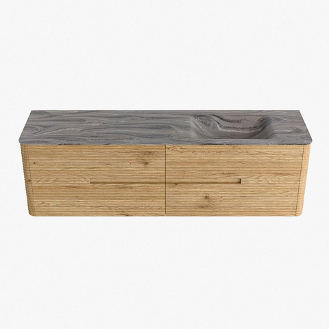 Mondiaz CIRO-DLUX Ensemble de meubles de salle de bains - 170x45x50cm - Plan vasque solid surface Sombra - 1 bassin à droite - sans trous de robinet - 4 tiroirs - Chêne
