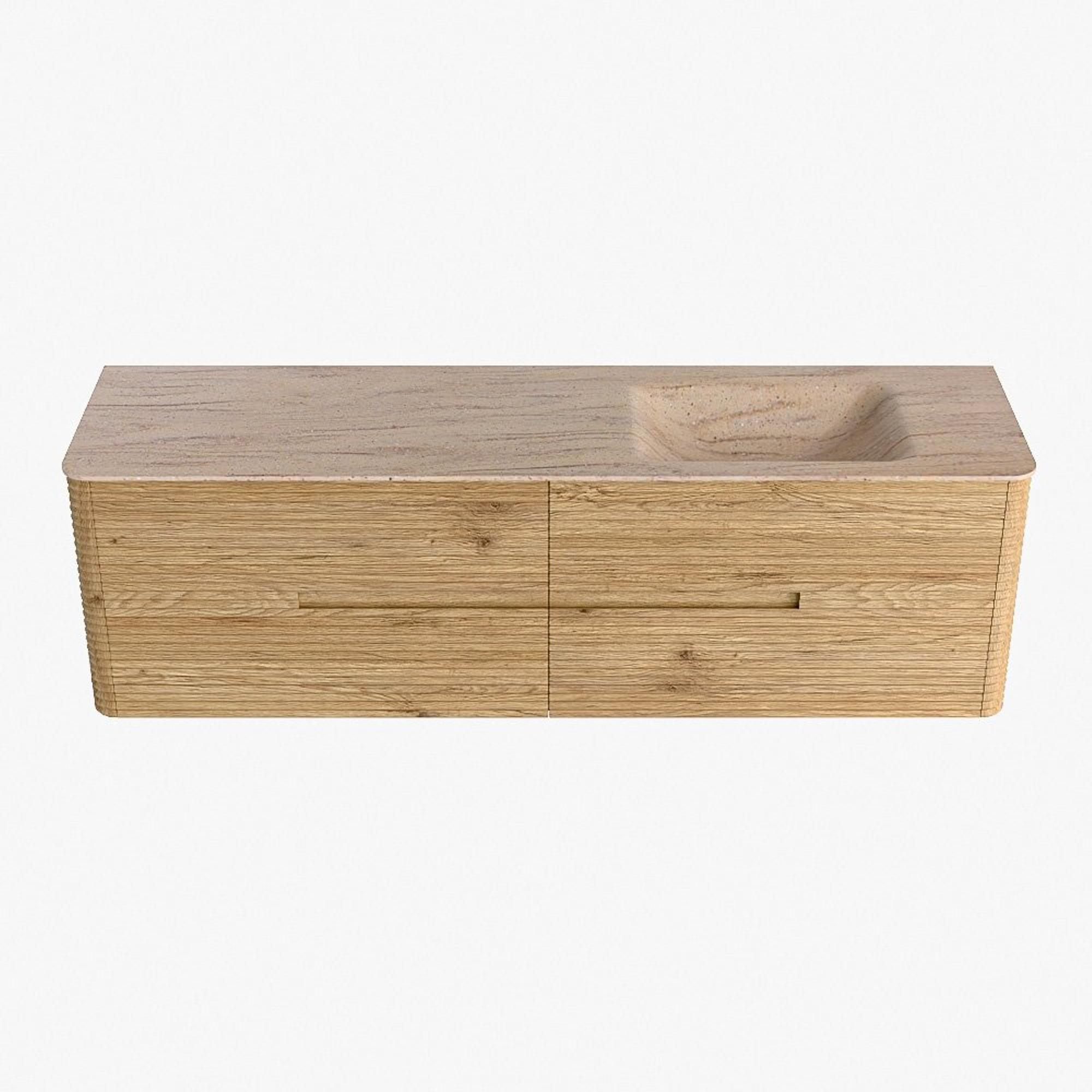 Mondiaz CIRO-DLUX Ensemble de meubles de salle de bains - 170x45x50cm - Plan vasque Solid surface Saba - 1 vasque à droite - 1 trou de robinet - 4 tiroirs - Chêne