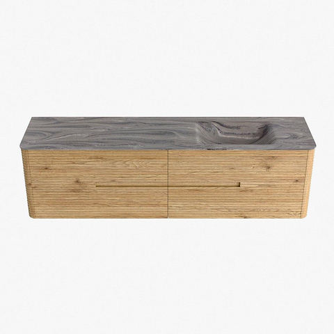Mondiaz CIRO-DLUX Ensemble de meubles de salle de bains - 180x45x50cm - Plan vasque solid surface Sombra - 1 lavabo à droite - sans trous de robinet - 4 tiroirs - Chêne
