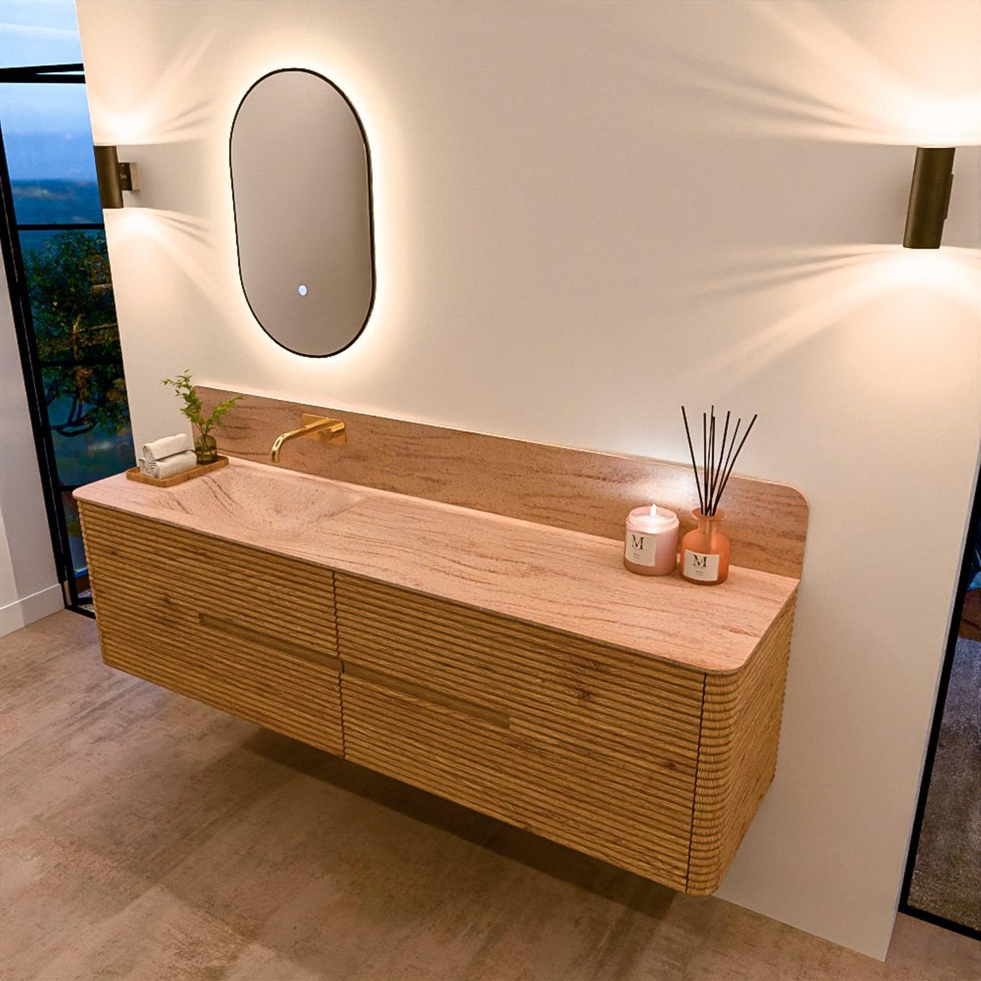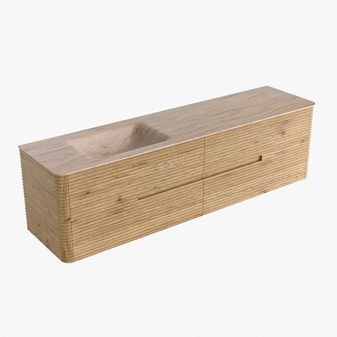 Mondiaz CIRO-DLUX Ensemble de meubles de salle de bains - 180x45x50cm - vasque en solid surface Saba - 1 lavabo à gauche - sans trous de robinet - 4 tiroirs - Chêne