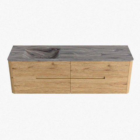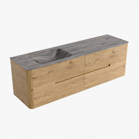 Mondiaz CIRO-DLUX Meuble de salle de bains - 160x45x50cm - Plan-vasque solid surface Sombra - 1 vasque à gauche - sans trou de robinetterie - 4 tiroirs - Chêne