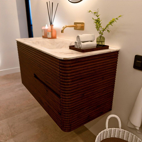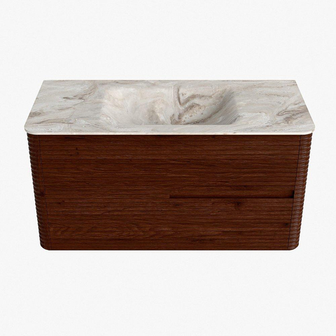 Mondiaz CIRO-DLUX Meuble de salle de bains ensemble - 100x45x50cm - lavabo solid surface Frappe - 1 vasque au milieu - sans trous de robinet - 2 tiroirs - Ruby