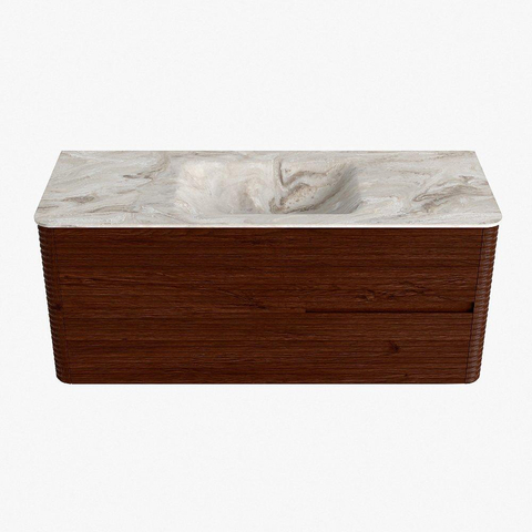 Mondiaz CIRO-DLUX Meuble de salle de bains - 120x45x50cm - Plan vasque solid surface Frappe - 1 lavabo au milieu - sans trous de robinet - 2 tiroirs - Ruby