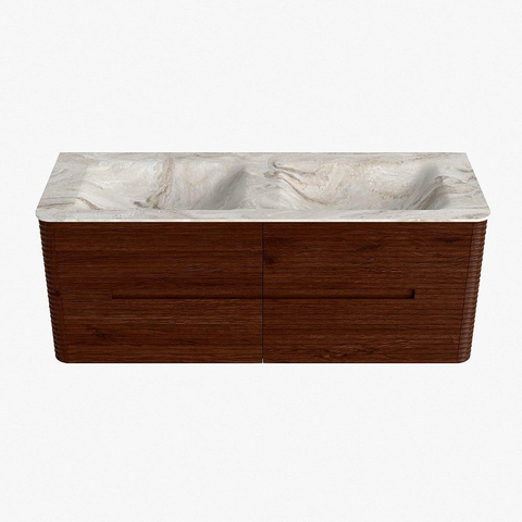 Mondiaz CIRO-DLUX Ensemble meuble de salle de bains - 130x45x50cm - Vasque solid surface Frappe - 2 lavabos double - sans trous de robinet - 4 tiroirs - Ruby