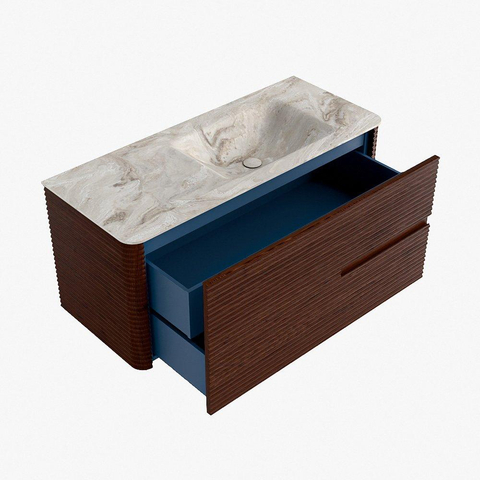 Mondiaz CIRO-DLUX Ensemble de meuble de salle de bains - 110x45x50cm - Lavabo solid surface Frappe - 1 vasque à droite - 1 trou de robinet - 2 tiroirs - Ruby