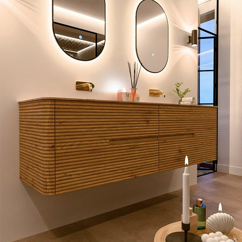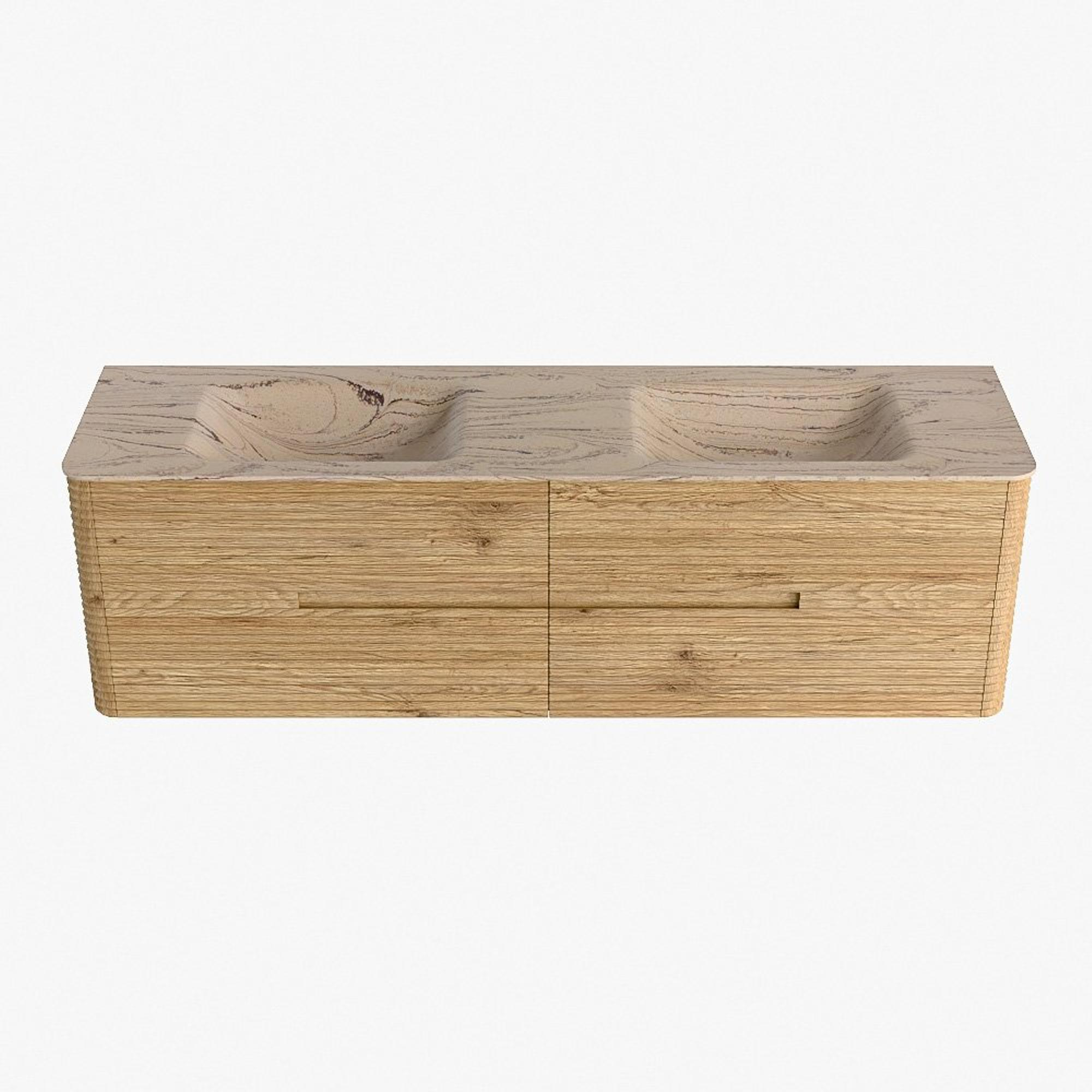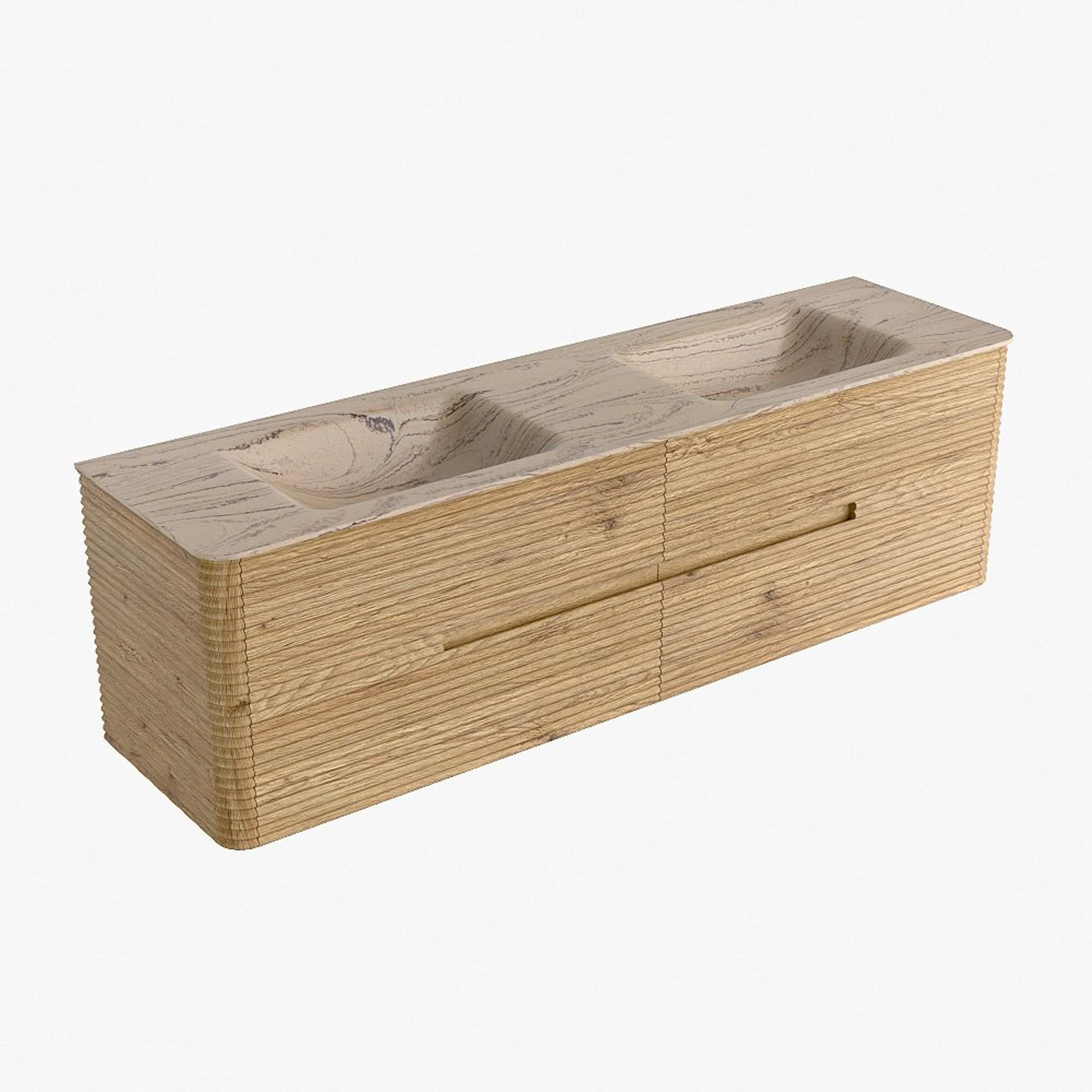 Mondiaz CIRO-DLUX Ensemble de meubles de salle de bains - 170x45x50cm - lavabo solid surface Arena - 2 vasques double - sans trous de robinet - 4 tiroirs - Chêne