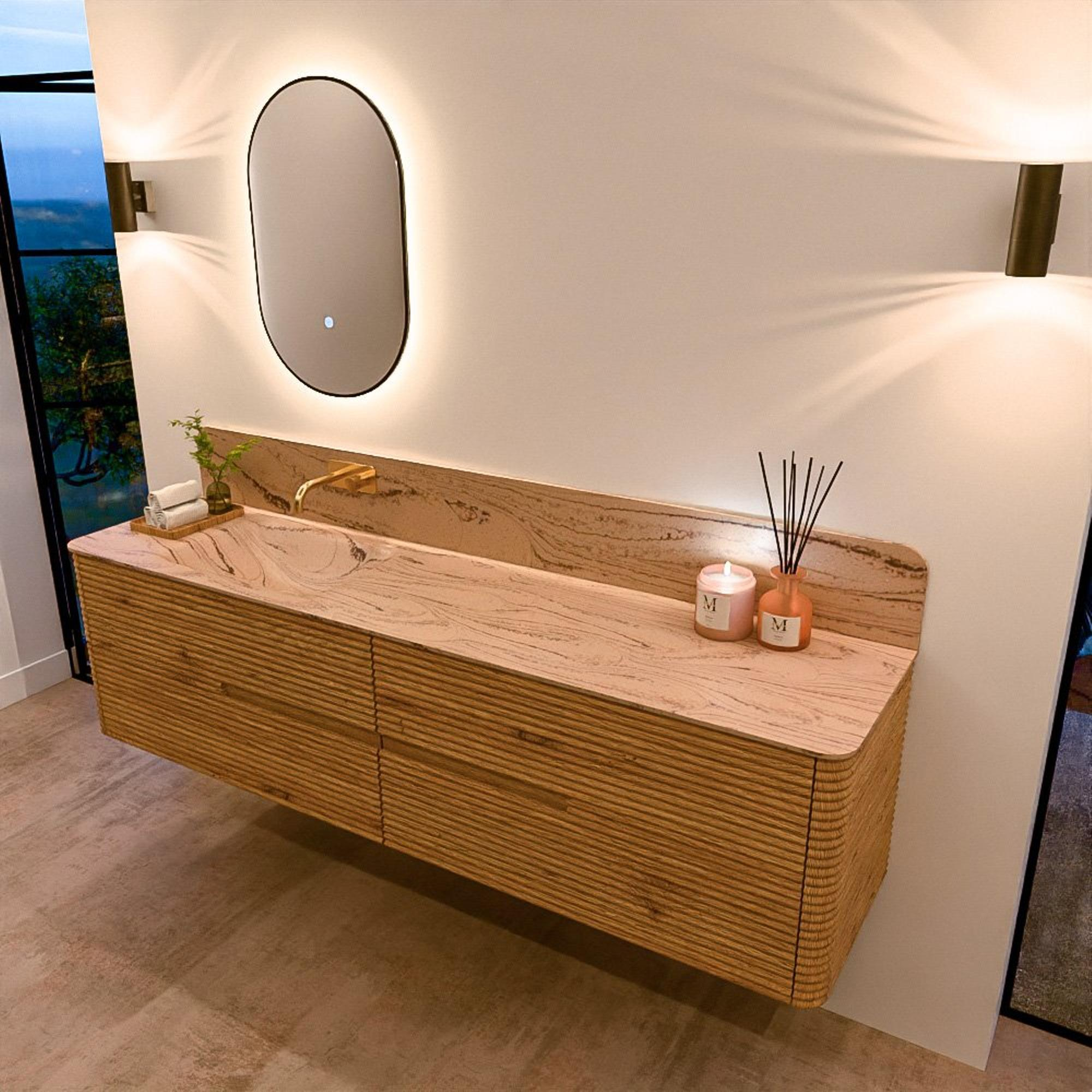 Le meuble de salle de bain CIRO-DLUX a été développé pour ceux qui choisissent un design moderne, des matériaux naturels et une fonctionnalité de haute qualité. Avec des dimensions allant de 70 cm à 190 cm, la gamme CIRO-DLUX s’intègre facilement aussi bien dans les salles de bain compactes que dans les grands espaces de design. Chaque meuble est une combinaison équilibrée d’esthétique, de savoir-faire et de qualité durable.
