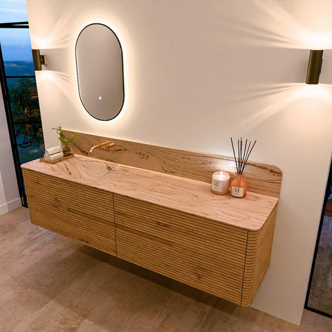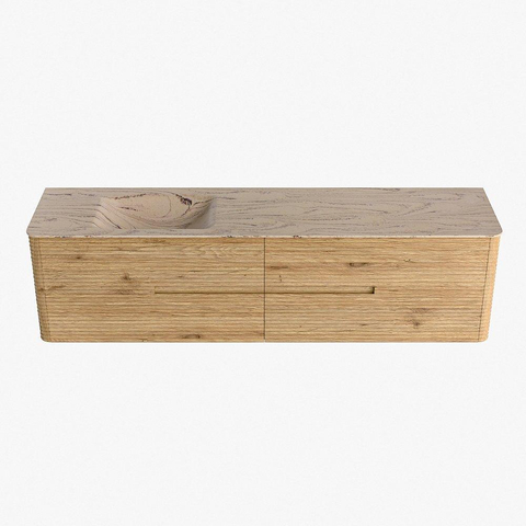 Mondiaz CIRO-DLUX Ensemble de meubles de salle de bains - 190x45x50cm - lavabo Solid surface Arena - 1 vasque à gauche - sans trous de robinet - 4 tiroirs - Chêne