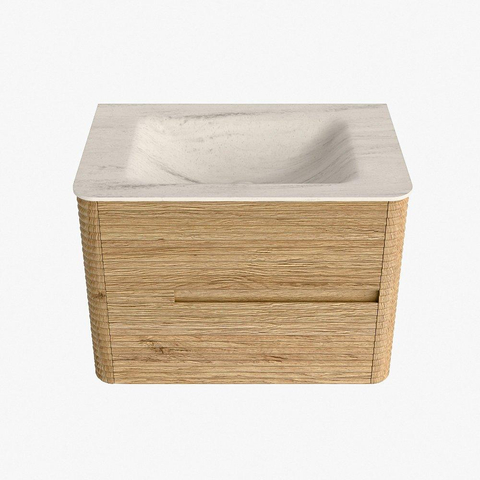 Mondiaz CIRO-DLUX Ensemble de meuble de salle de bains - 70x45x50cm - Plan-vasque en solid surface Meli - 1 vasque au milieu - 1 trou de robinetterie - 2 tiroirs - Chêne