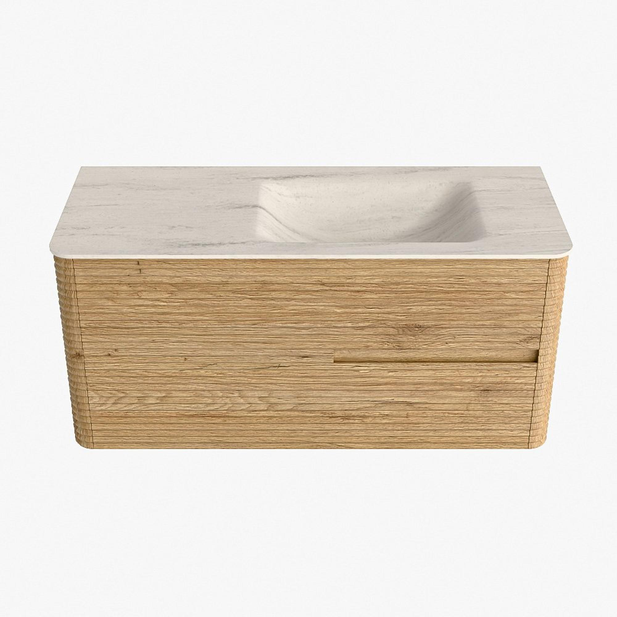 Mondiaz CIRO-DLUX Ensemble de meubles de salle de bains - 110x45x50cm - Vasque solid surface Meli - 1 lavabo à droite - 1 trou de robinet - 2 tiroirs - Chêne