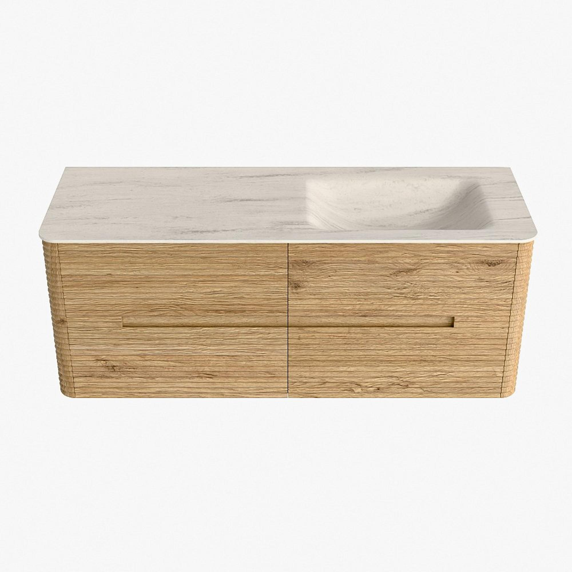 Mondiaz CIRO-DLUX Meuble de salle de bains - 130x45x50cm - Plan vasque solid surface Meli - 1 lavabo à droite - 1 trou de robinetterie - 4 tiroirs - Chêne