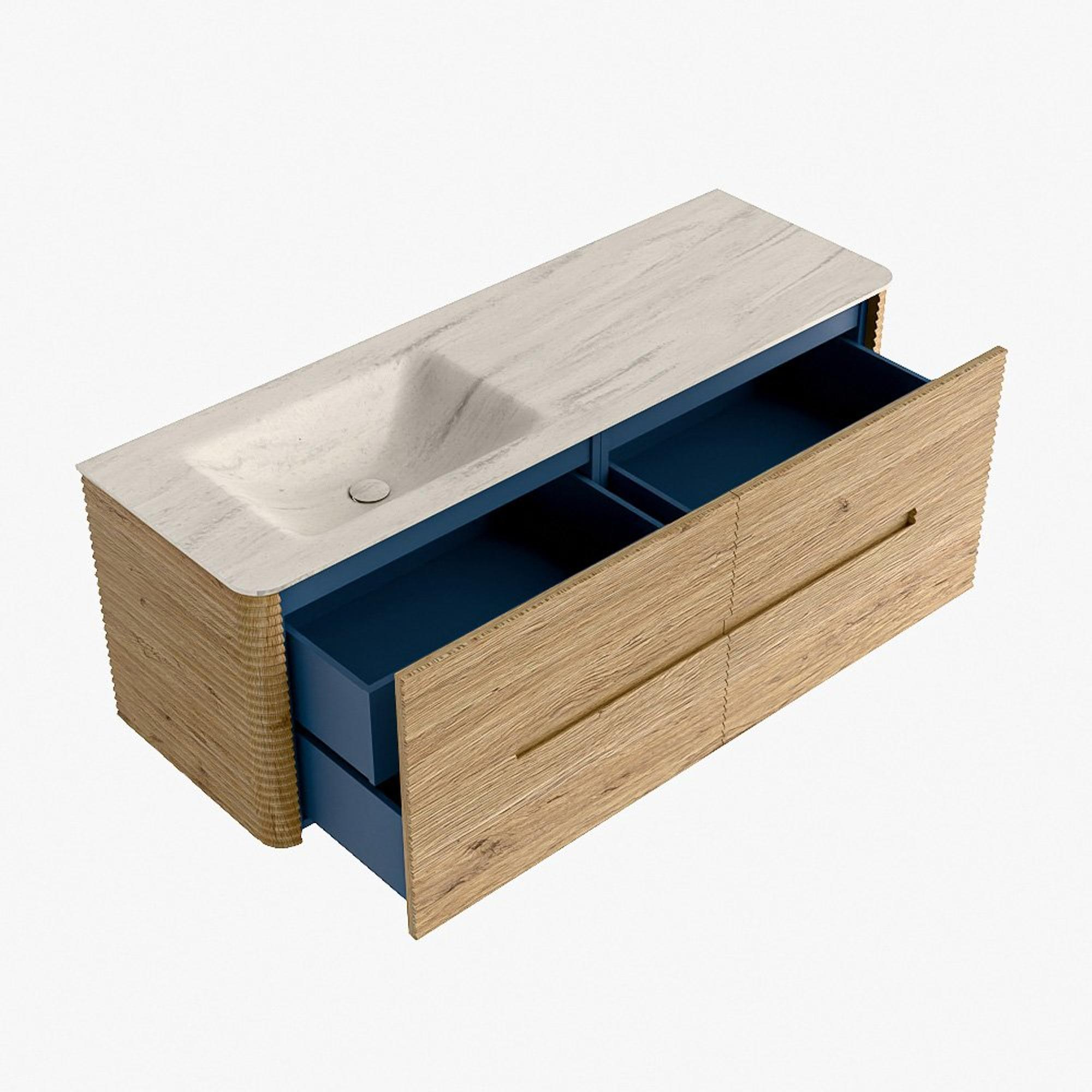 Mondiaz CIRO-DLUX Ensemble de meubles de salle de bains - 140x45x50cm - lavabo en résine minérale Meli - 1 vasque à gauche - sans trous de robinetterie - 4 tiroirs - Chêne