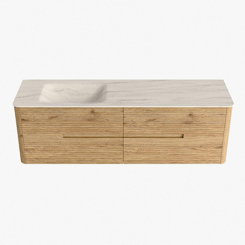 Mondiaz CIRO-DLUX Ensemble de meubles de salle de bains - 160x45x50cm - Plan-vasque solid surface Meli - 1 bassin à gauche - 1 trou de robinet - 4 tiroirs - Chêne