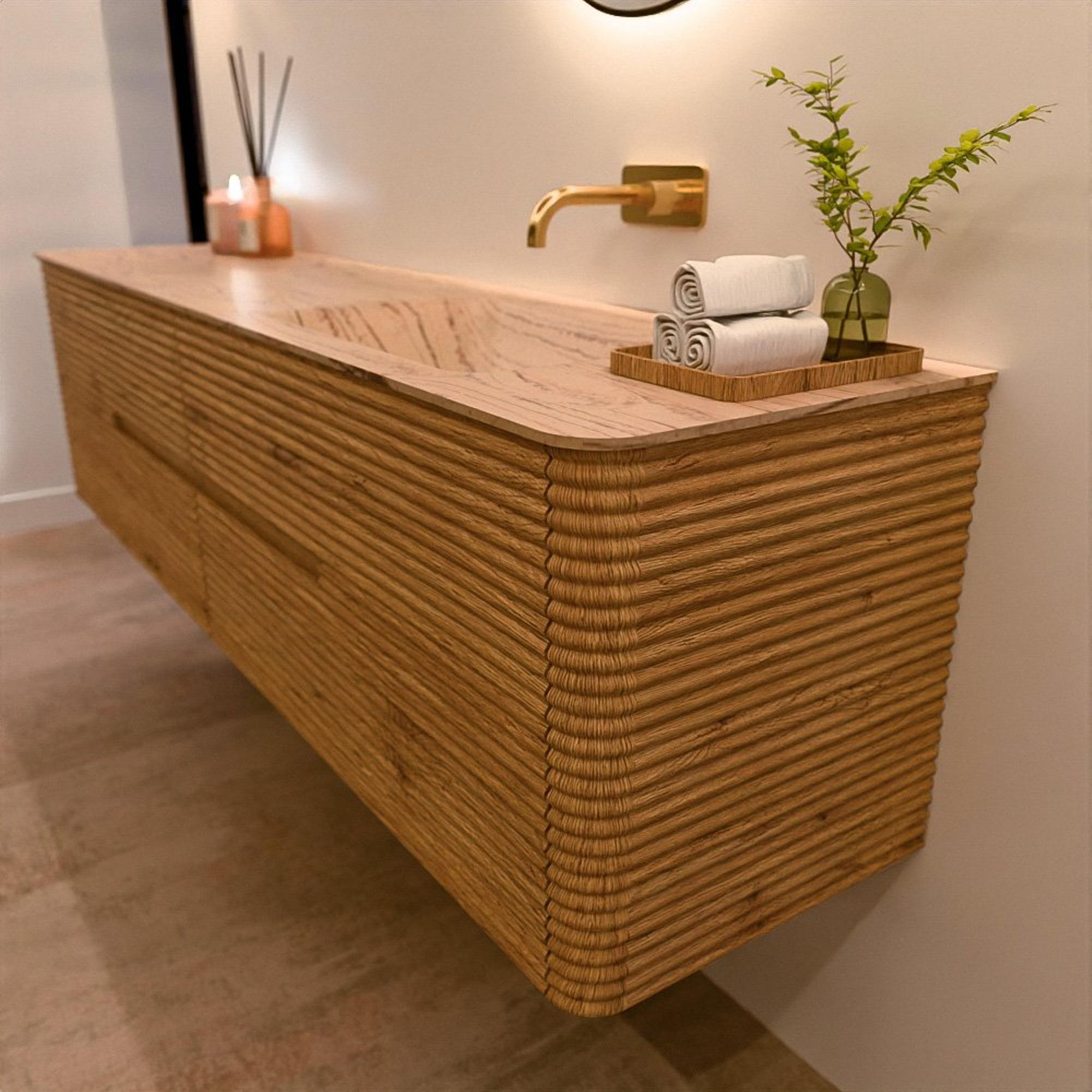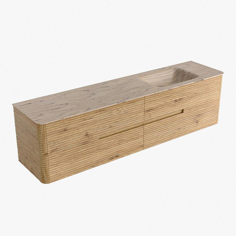 Mondiaz CIRO-DLUX Meuble de salle de bains - 190x45x50cm - Plan vasque solid surface Arena - 1 bassin à droite - sans trous de robinetterie - 4 tiroirs - Chêne