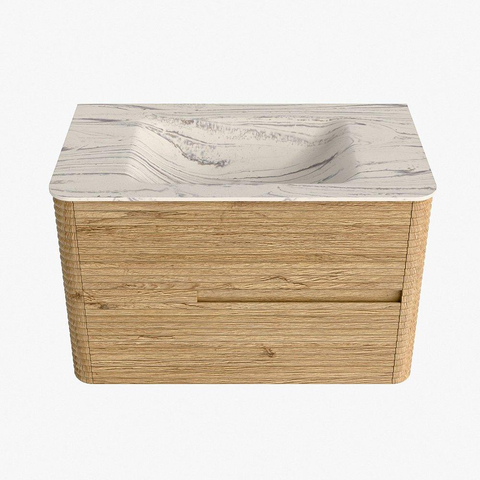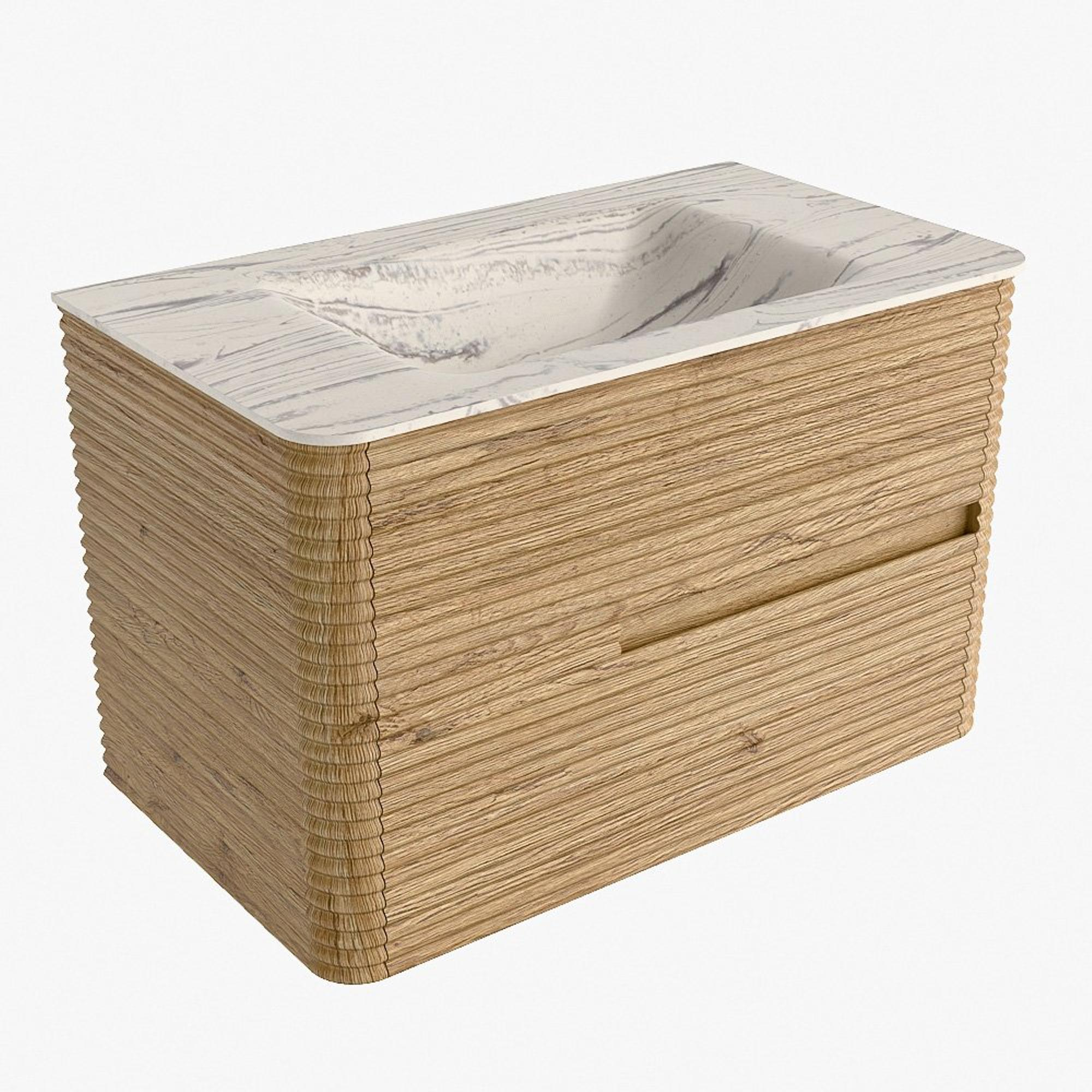 Mondiaz CIRO-DLUX Ensemble de meubles de salle de bains - 80x45x50cm - lavabo solid surface Nata - 1 bassin au centre - sans trous de robinet - 2 tiroirs - Chêne