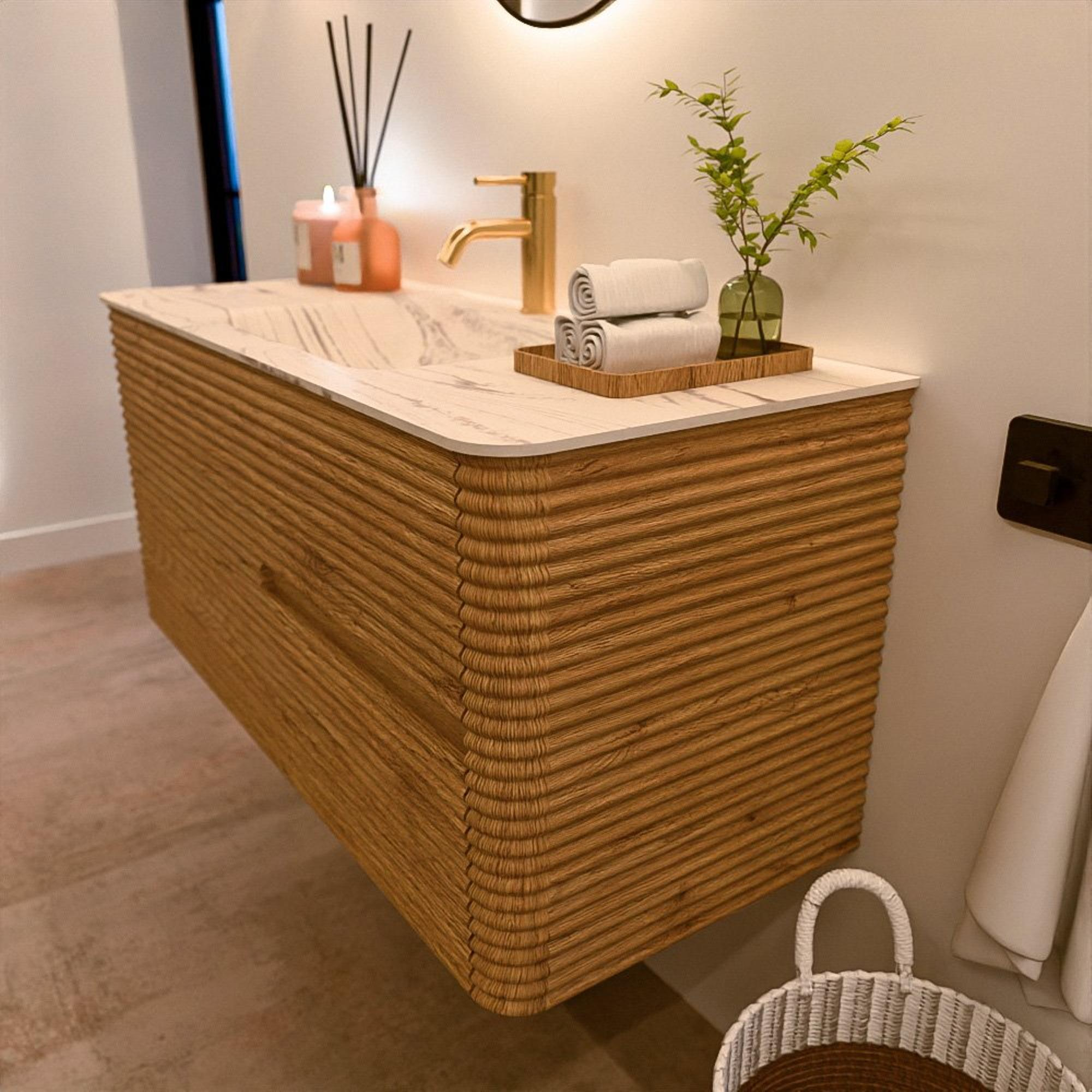 Le meuble de salle de bain CIRO-DLUX a été développé pour ceux qui choisissent un design moderne, des matériaux naturels et une fonctionnalité de haute qualité. Avec des dimensions allant de 70 cm à 190 cm, la gamme CIRO-DLUX s’intègre facilement aussi bien dans les salles de bain compactes que dans les grands espaces de design. Chaque meuble est une combinaison équilibrée d’esthétique, de savoir-faire et de qualité durable.