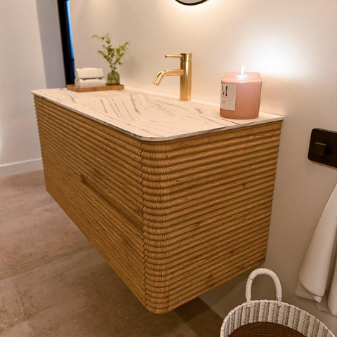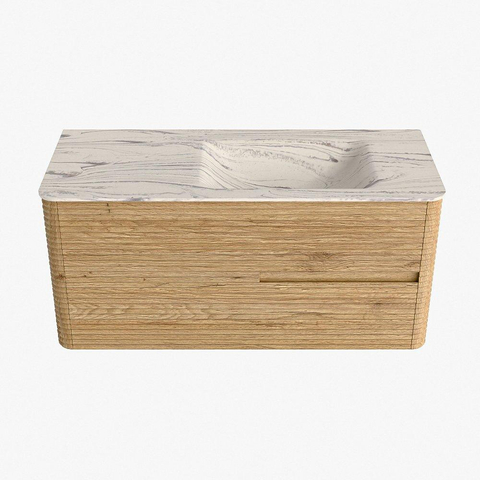 Mondiaz CIRO-DLUX Ensemble de meubles de salle de bains - 110x45x50cm - Plan vasque solid surface Nata - 1 vasque à droite - 1 trou de robinet - 2 tiroirs - Chêne
