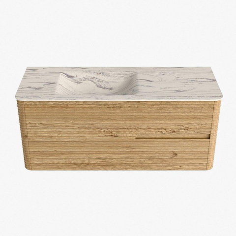 Mondiaz CIRO-DLUX Ensemble de meubles de salle de bains - 120x45x50cm - Vasque en solid surface Nata - 1 lavabo à gauche - 1 trou de robinet - 2 tiroirs - Chêne