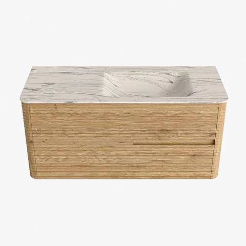 Mondiaz CIRO-DLUX Meuble de salle de bains - 110x45x50cm - Plan vasque solid surface Nata - 1 lavabo à droite - sans trous de robinetterie - 2 tiroirs - Chêne