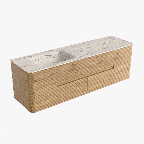 Mondiaz CIRO-DLUX Meuble de salle de bains - 160x45x50cm - Vasque en solid surface Nata - 1 lavabo à gauche - 1 trou de robinet - 4 tiroirs - Chêne