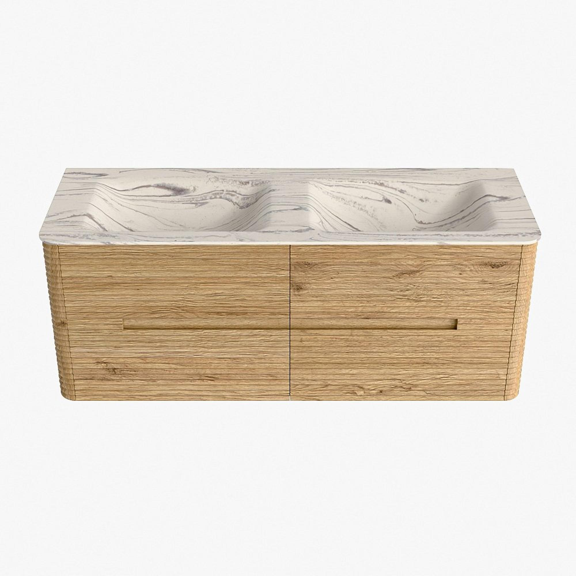 Mondiaz CIRO-DLUX Meuble de salle de bains - 130x45x50cm - Plan-vasque solid surface Nata - 2 vasques Double - sans trous de robinetterie - 4 tiroirs - Chêne