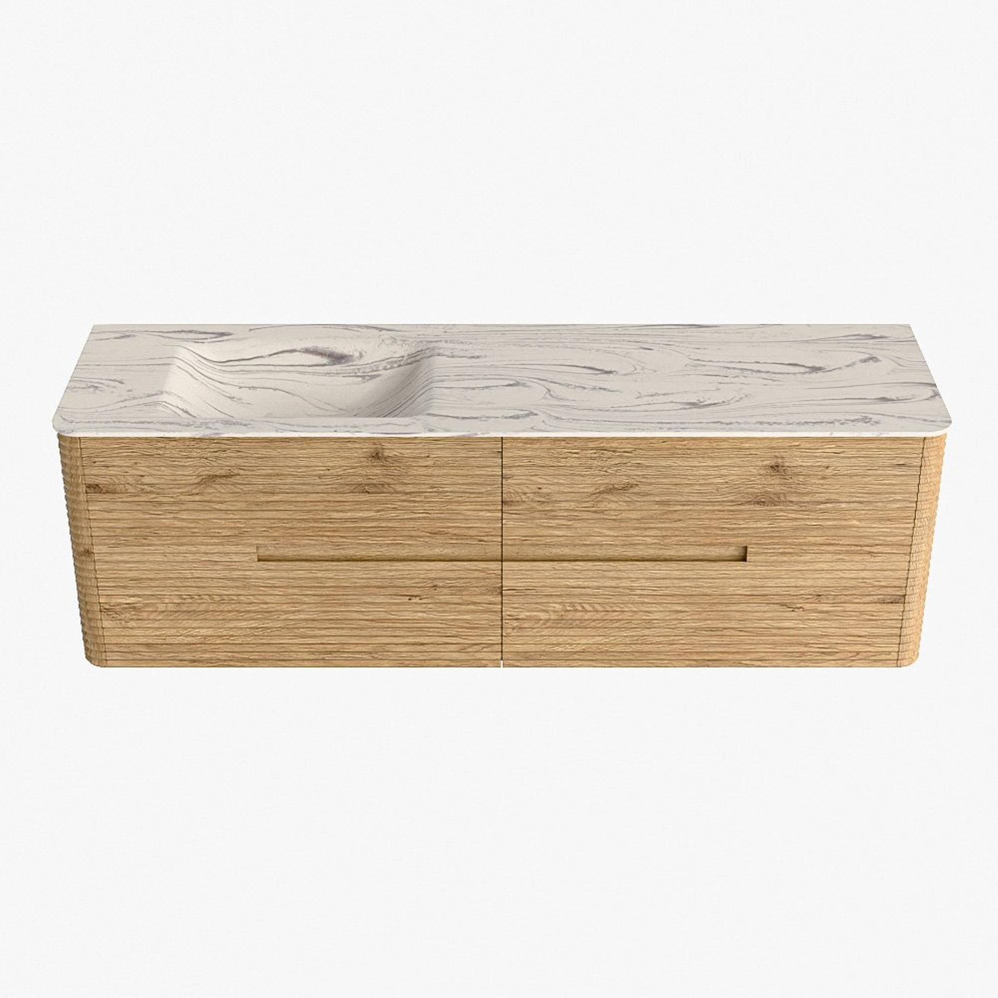 Mondiaz CIRO-DLUX Ensemble de meubles de salle de bains - 160x45x50cm - Plan vasque solid surface Nata - 1 lavabo à gauche - sans trous de robinet - 4 tiroirs - Chêne