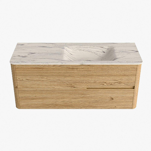 Mondiaz CIRO-DLUX Meuble de salle de bains - 120x45x50cm - Vasque solid surface Nata - 1 lavabo à droite - 1 trou de robinet - 2 tiroirs - Chêne