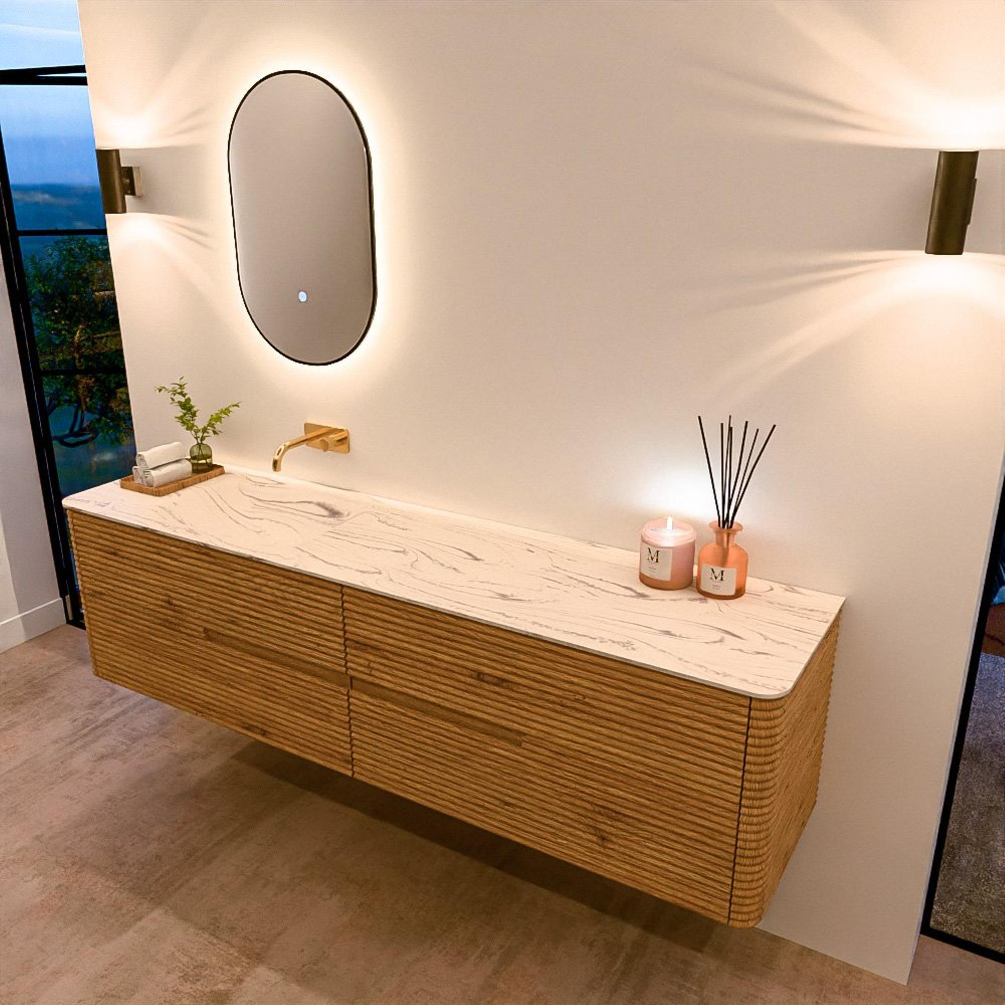 Mondiaz CIRO-DLUX Meuble de salle de bains - 190x45x50cm - Plan vasque solid surface Nata - 1 lavabo à gauche - sans trous de robinet - 4 tiroirs - Chêne