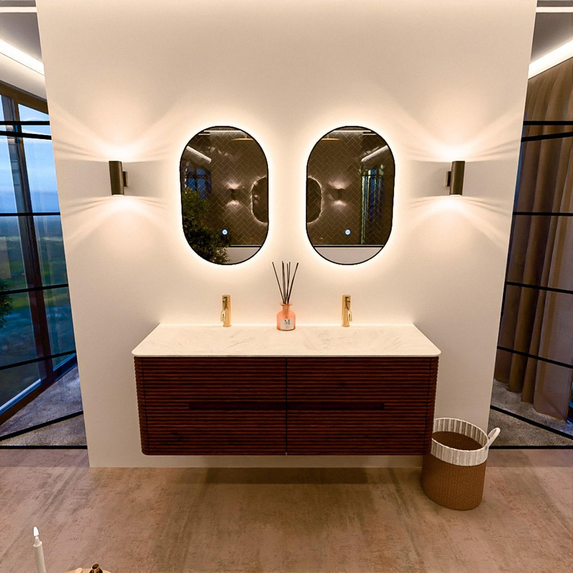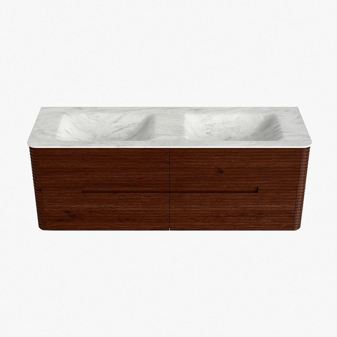 Mondiaz CIRO-DLUX Meuble de salle de bains - 140x45x50cm - Vasque solid surface Opalo - 2 vasques double - 2 trous de robinetterie - 4 tiroirs - Ruby