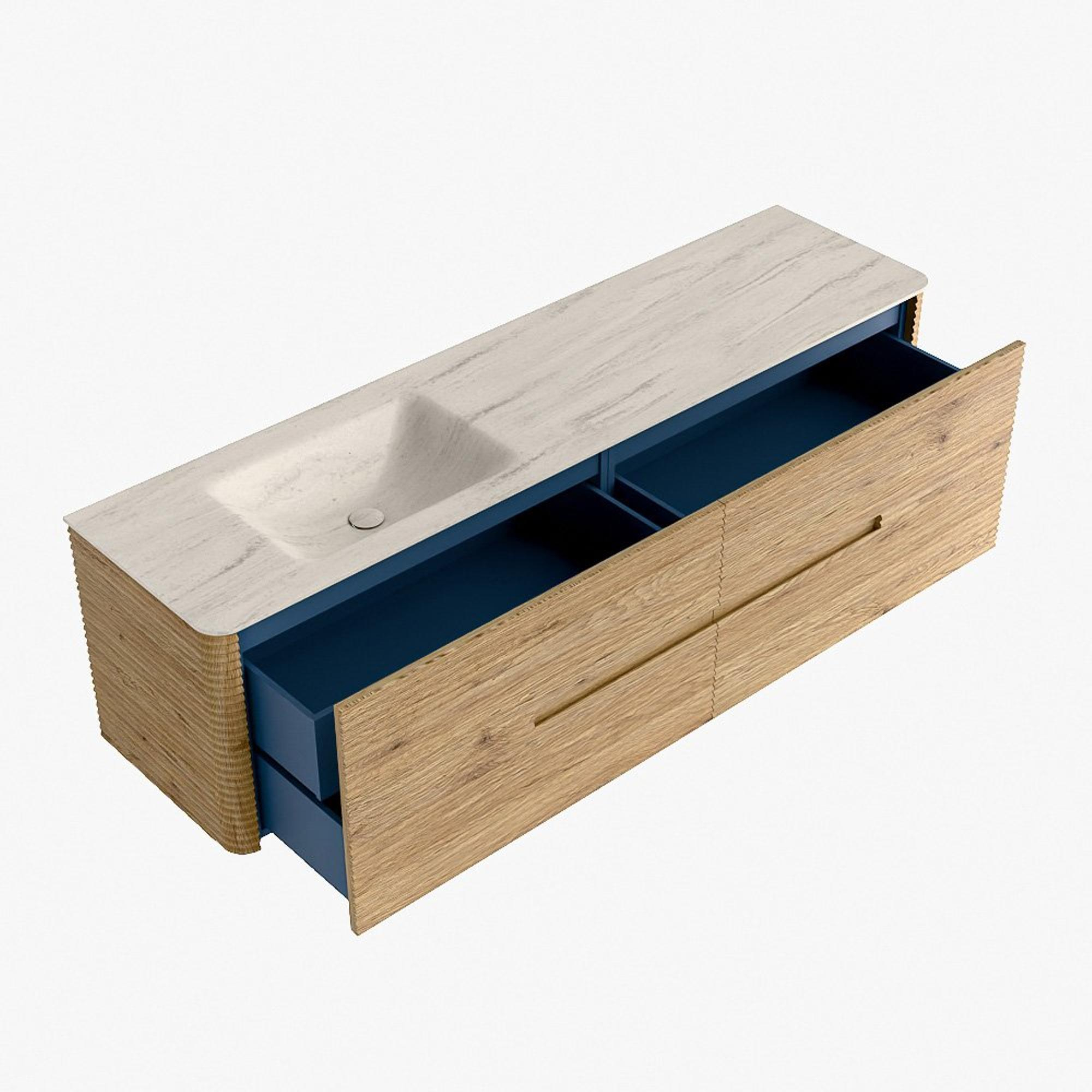 Mondiaz CIRO-DLUX Ensemble de meubles de salle de bains - 180x45x50cm - plan-vasque Solid surface Meli - 1 lavabo à gauche - sans trous de robinetterie - 4 tiroirs - Chêne