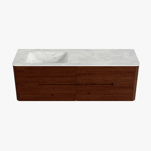 Mondiaz CIRO-DLUX Ensemble de meubles de salle de bains - 150x45x50cm - plan-vasque solid surface Opalo - 1 vasque à gauche - sans trous de robinet - 4 tiroirs - Ruby