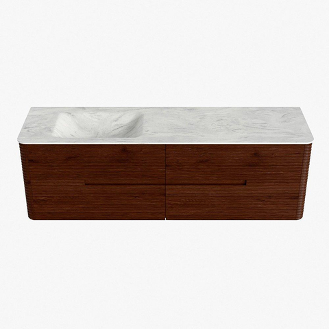 Mondiaz CIRO-DLUX Ensemble de meubles de salle de bains - 160x45x50cm - plan-vasque Solid surface Opalo - 1 lavabo à gauche - sans trous de robinet - 4 tiroirs - Ruby