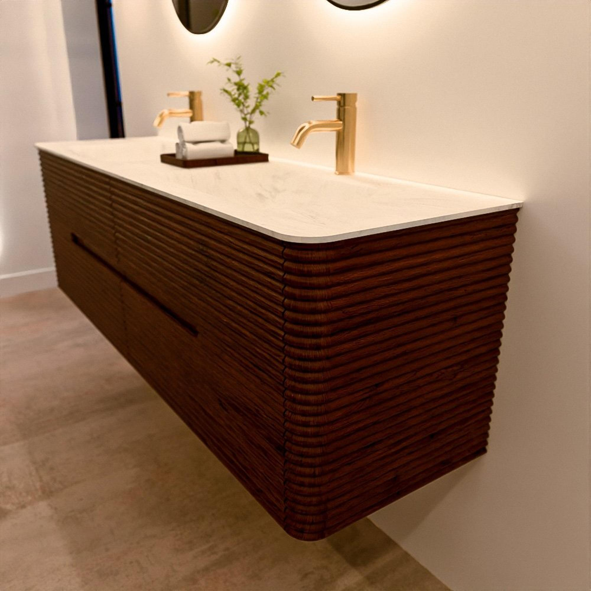 Le meuble de salle de bain CIRO-DLUX a été développé pour ceux qui choisissent un design moderne, des matériaux naturels et une fonctionnalité de haute qualité. Avec des dimensions allant de 70 cm à 190 cm, la gamme CIRO-DLUX s’intègre facilement aussi bien dans les salles de bain compactes que dans les grands espaces de design. Chaque meuble est une combinaison équilibrée d’esthétique, de savoir-faire et de qualité durable.