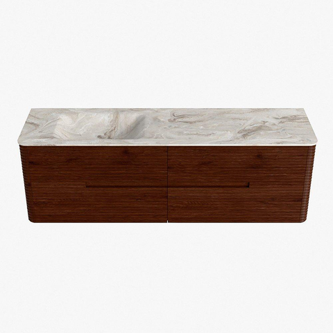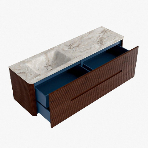Mondiaz CIRO-DLUX Ensemble de meubles de salle de bains - 160x45x50cm - Plan vasque en solid surface Frappe - 1 vasque à gauche - sans trous de robinetterie - 4 tiroirs - Ruby