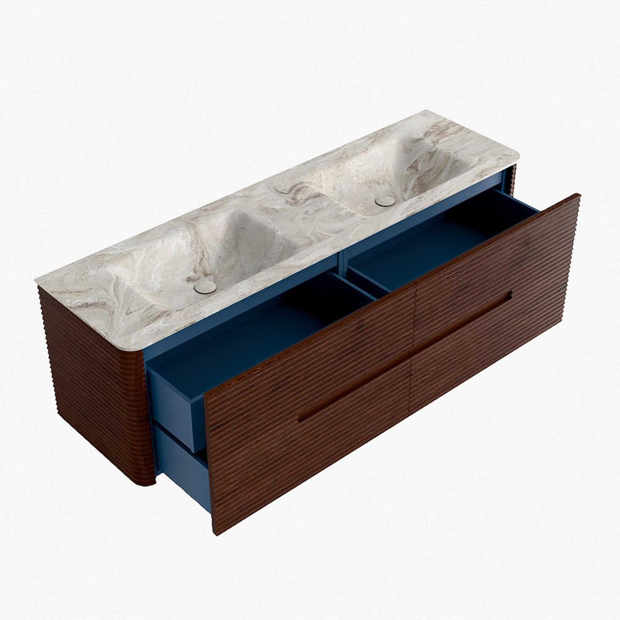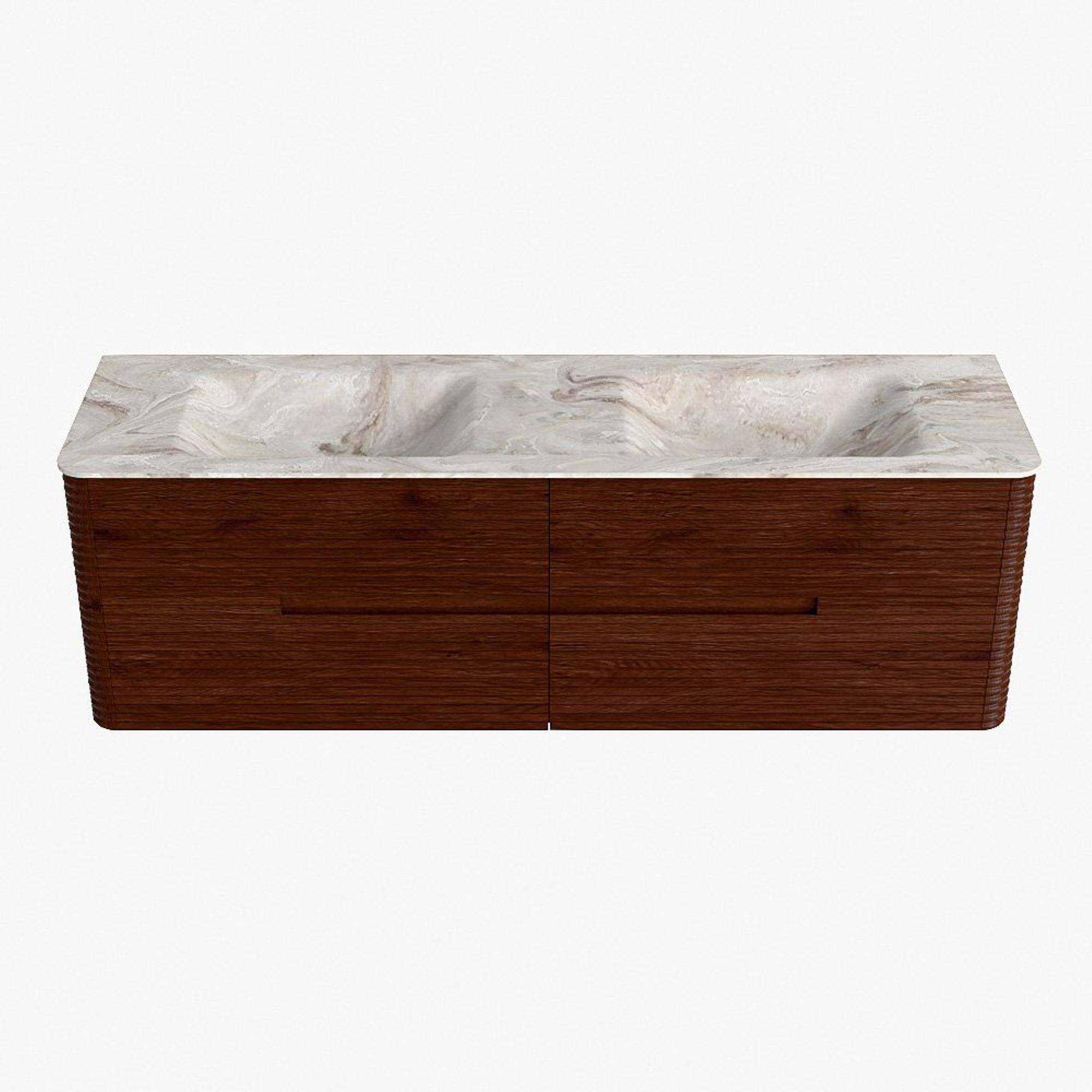 Mondiaz CIRO-DLUX Meuble de salle de bains - 160x45x50cm - Plan-vasque en solid surface Frappe - 2 vasques Double - sans trous de robinetterie - 4 tiroirs - Ruby