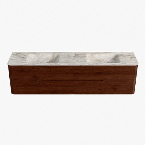 Mondiaz CIRO-DLUX Meuble de salle de bains - 190x45x50cm - plan vasque Solid surface Frappe - 2 vasques double - sans trous de robinet - 4 tiroirs - Ruby