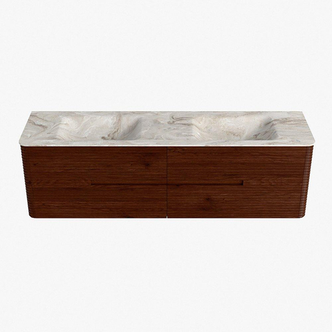 Mondiaz CIRO-DLUX Ensemble de meubles de salle de bains - 170x45x50cm - lavabo solid surface Frappe - 2 vasques double - sans trous de robinet - 4 tiroirs - Ruby