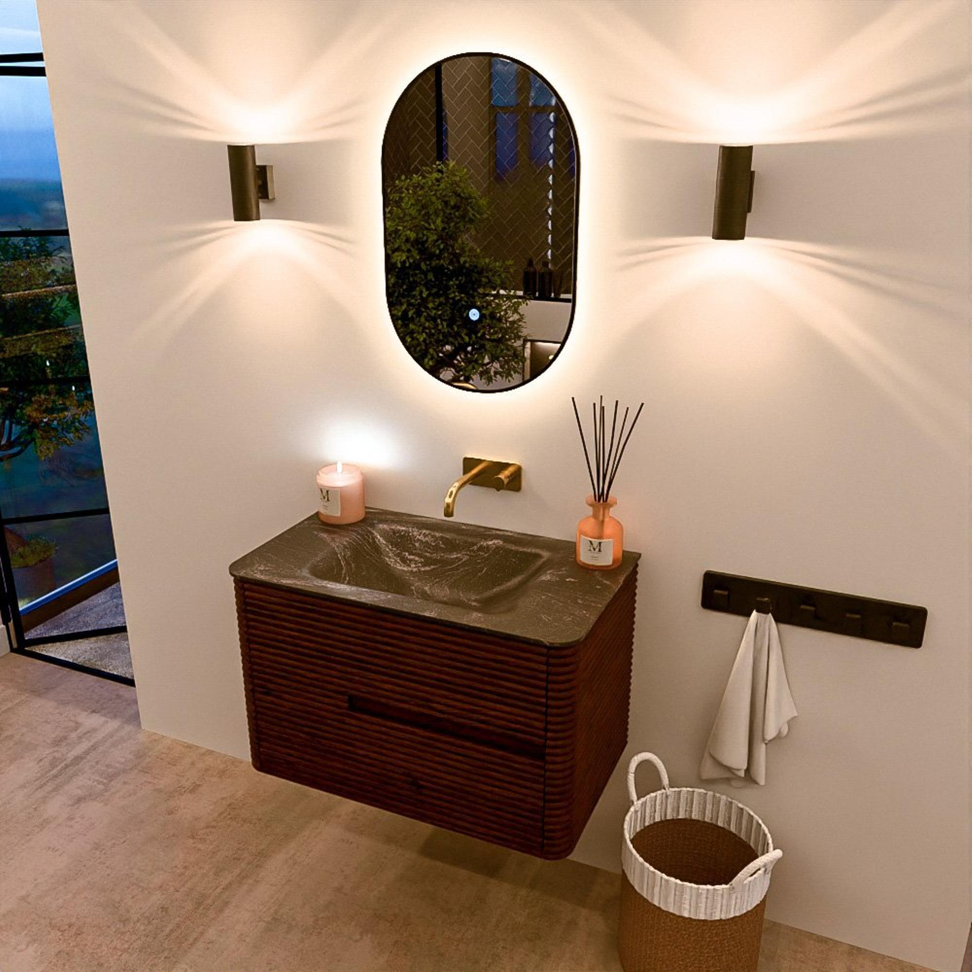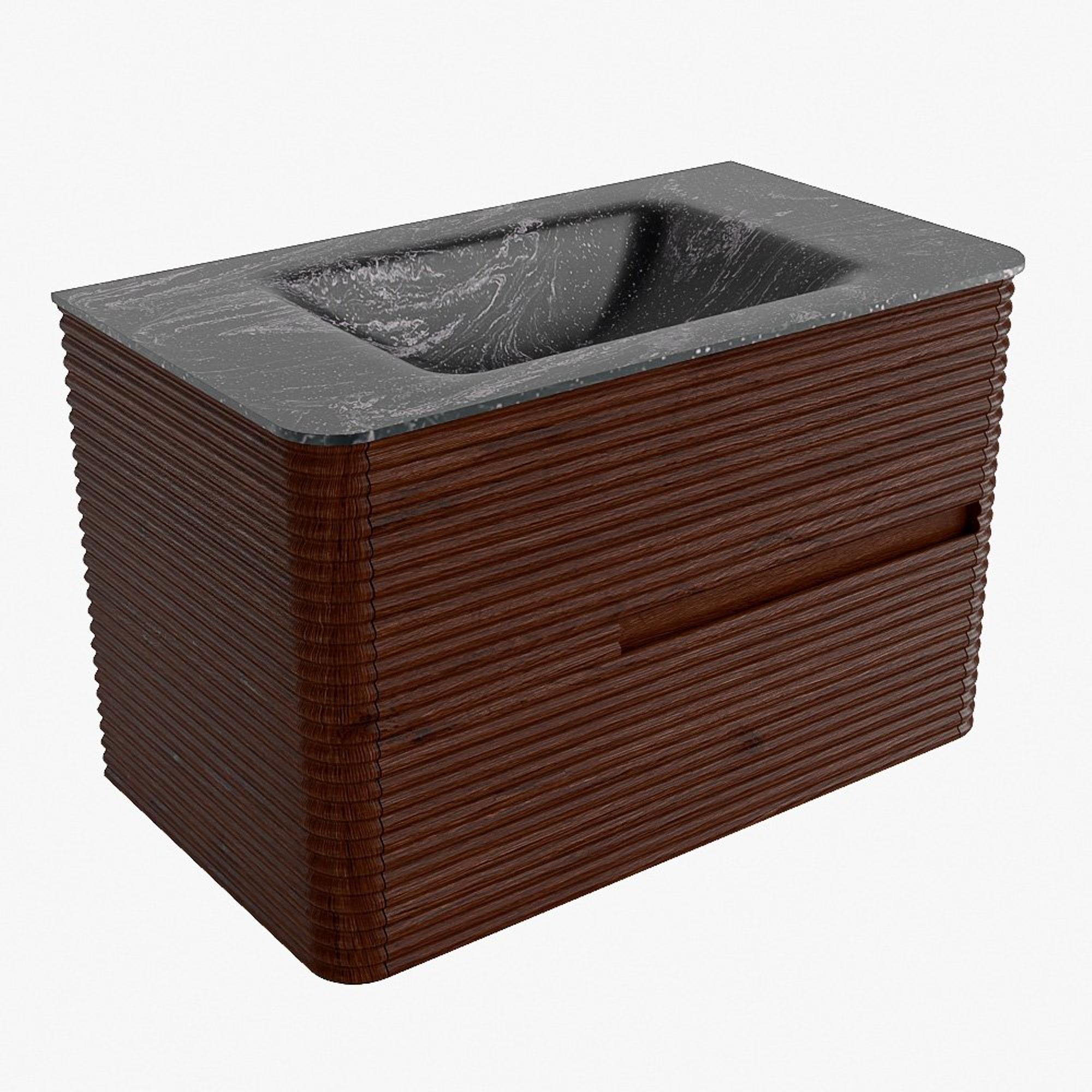 Mondiaz CIRO-DLUX Ensemble de meubles de salle de bains - 80x45x50cm - lavabo solid surface Lava - 1 vasque au milieu - sans trous de robinet - 2 tiroirs - Ruby