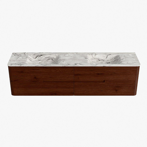 Mondiaz CIRO-DLUX Meuble de salle de bains - 190x45x50cm - Plan vasque solid surface Glace - 2 vasques double - 2 trous de robinet - 4 tiroirs - Ruby