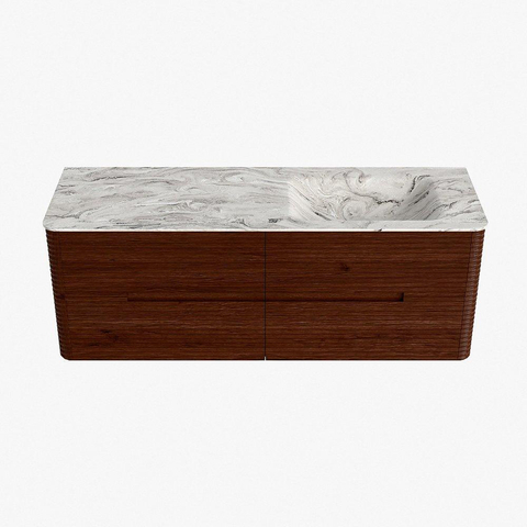 Mondiaz CIRO-DLUX Meuble de salle de bains - 140x45x50cm - vasque solid surface Glace - 1 lavabo à droite - sans trous de robinet - 4 tiroirs - Ruby