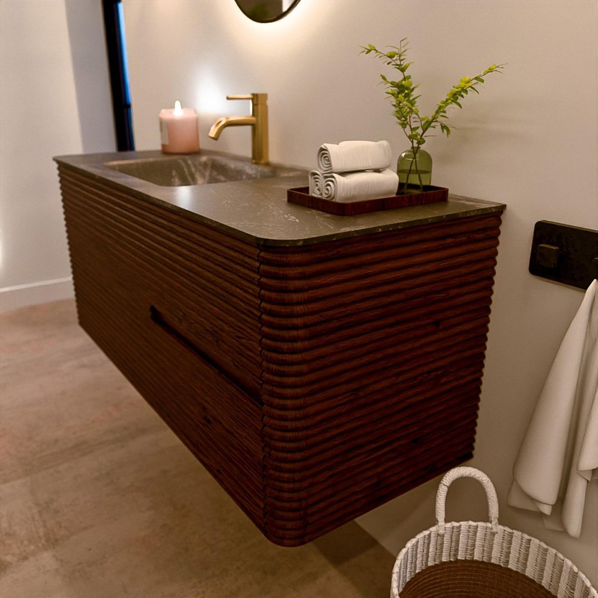 Mondiaz CIRO-DLUX Ensemble de meubles de salle de bains - 120x45x50cm - Lavabo solid surface Lava - 1 vasque à gauche - 1 trou de robinet - 2 tiroirs - Ruby