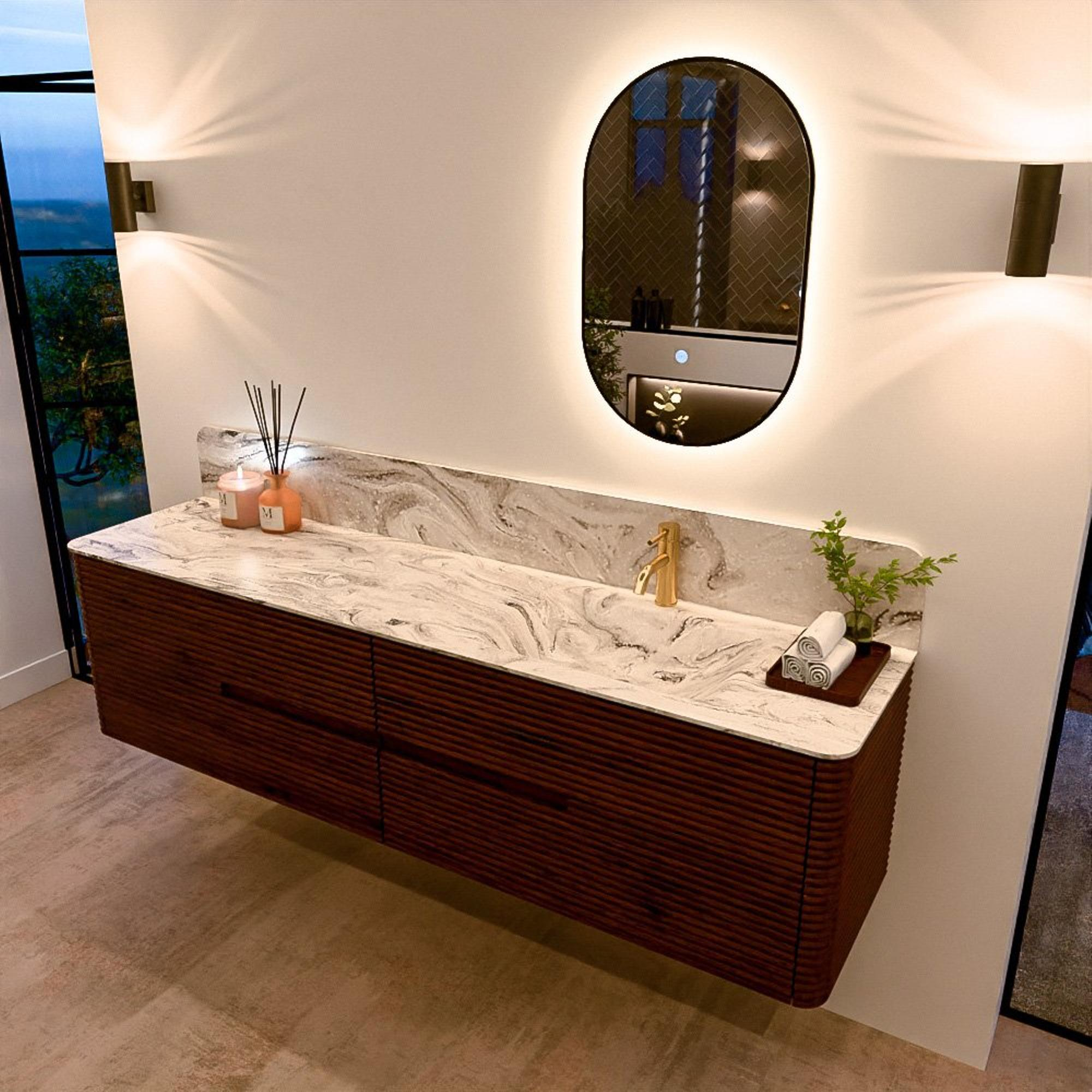 Le meuble de salle de bain CIRO-DLUX a été développé pour ceux qui choisissent un design moderne, des matériaux naturels et une fonctionnalité de haute qualité. Avec des dimensions allant de 70 cm à 190 cm, la gamme CIRO-DLUX s’intègre facilement aussi bien dans les salles de bain compactes que dans les grands espaces de design. Chaque meuble est une combinaison équilibrée d’esthétique, de savoir-faire et de qualité durable.