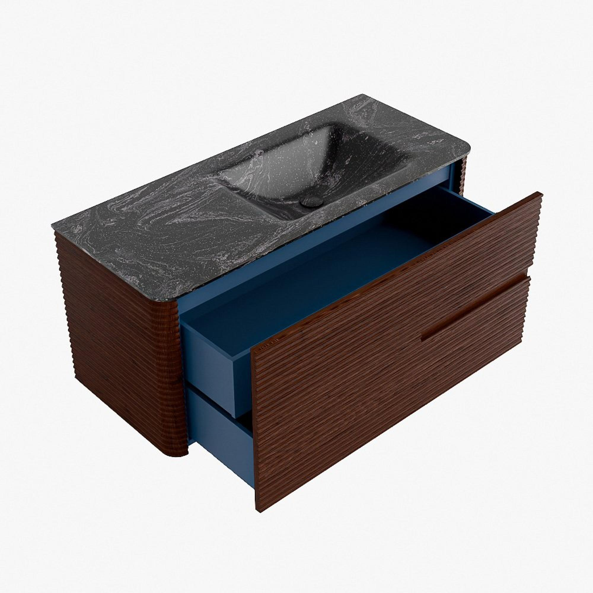 Mondiaz CIRO-DLUX Ensemble meuble de salle de bains - 110x45x50cm - Vasque solid surface Lava - 1 bassin à droite - sans trous de robinet - 2 tiroirs - Ruby
