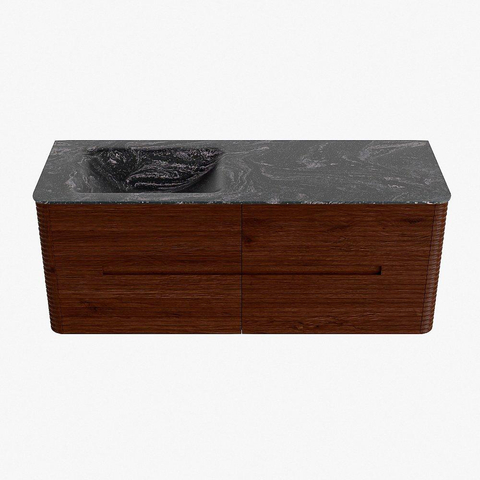Mondiaz CIRO-DLUX Meuble de salle de bains - 130x45x50cm - Plan vasque solid surface Lava - 1 lavabo à gauche - sans trous de robinet - 4 tiroirs - Ruby