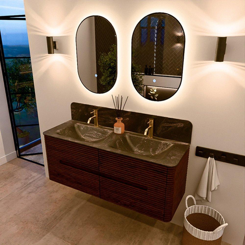 Mondiaz CIRO-DLUX Ensemble de meubles de salle de bains - 130x45x50cm - Vasque en solid surface Lava - 2 bacs Double - 2 trous de robinet - 4 tiroirs - Ruby