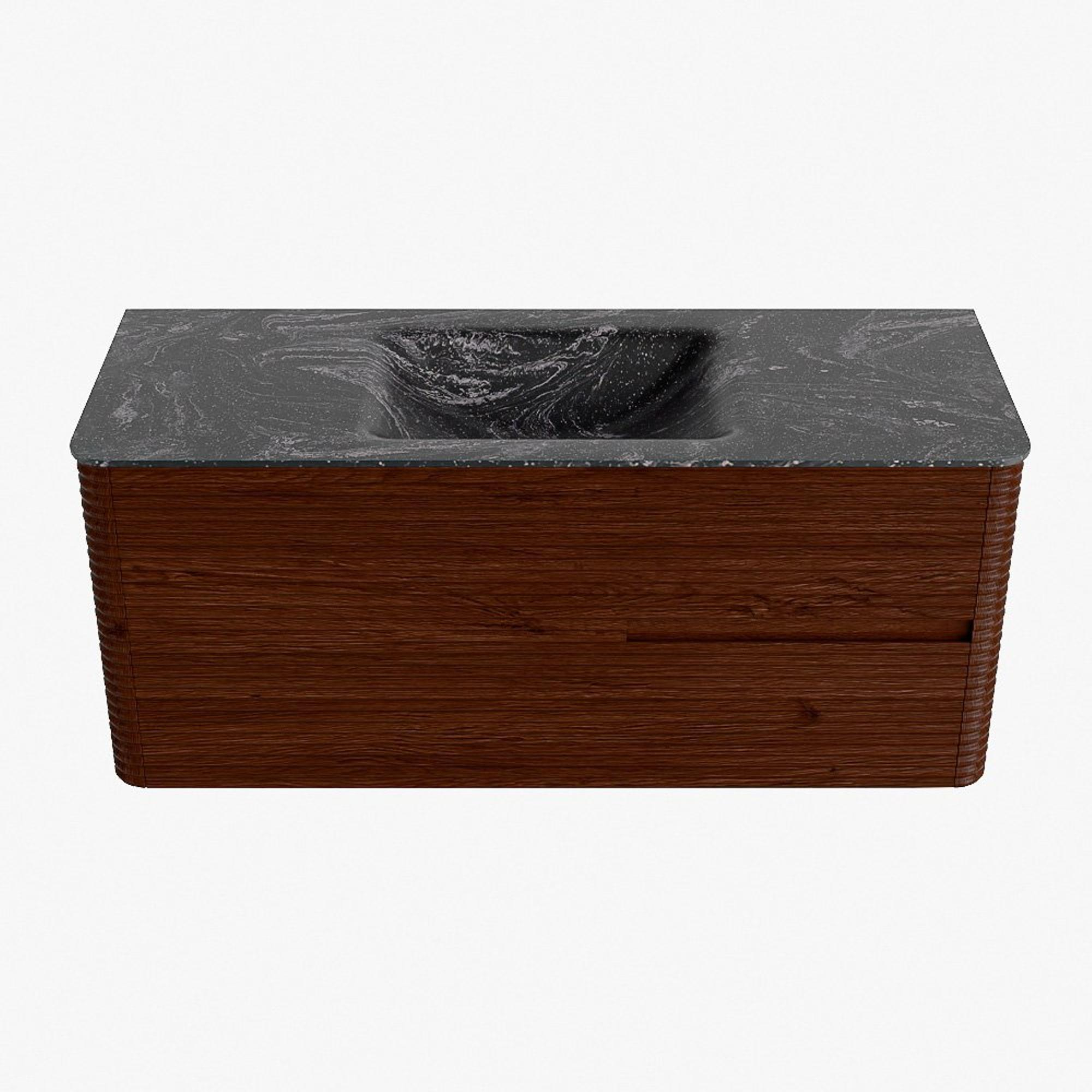 Mondiaz CIRO-DLUX Meuble de salle de bains - 120x45x50cm - lavabo solid surface Lava - 1 vasque au milieu - sans trous de robinet - 2 tiroirs - Ruby