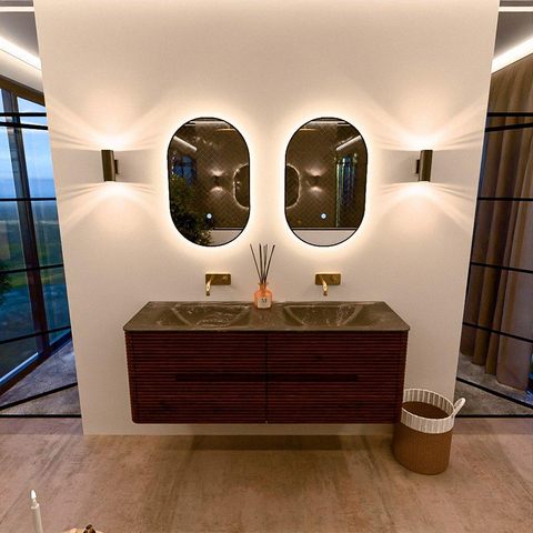 Mondiaz CIRO-DLUX Ensemble de meubles de salle de bains - 140x45x50cm - lavabo solid surface Lava - 2 vasques Double - sans trous de robinet - 4 tiroirs - Ruby