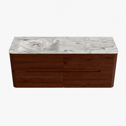 Mondiaz CIRO-DLUX Meuble de salle de bains - 130x45x50cm - lavabo en solid surface Glace - 1 vasque à gauche - sans trous de robinet - 4 tiroirs - Ruby