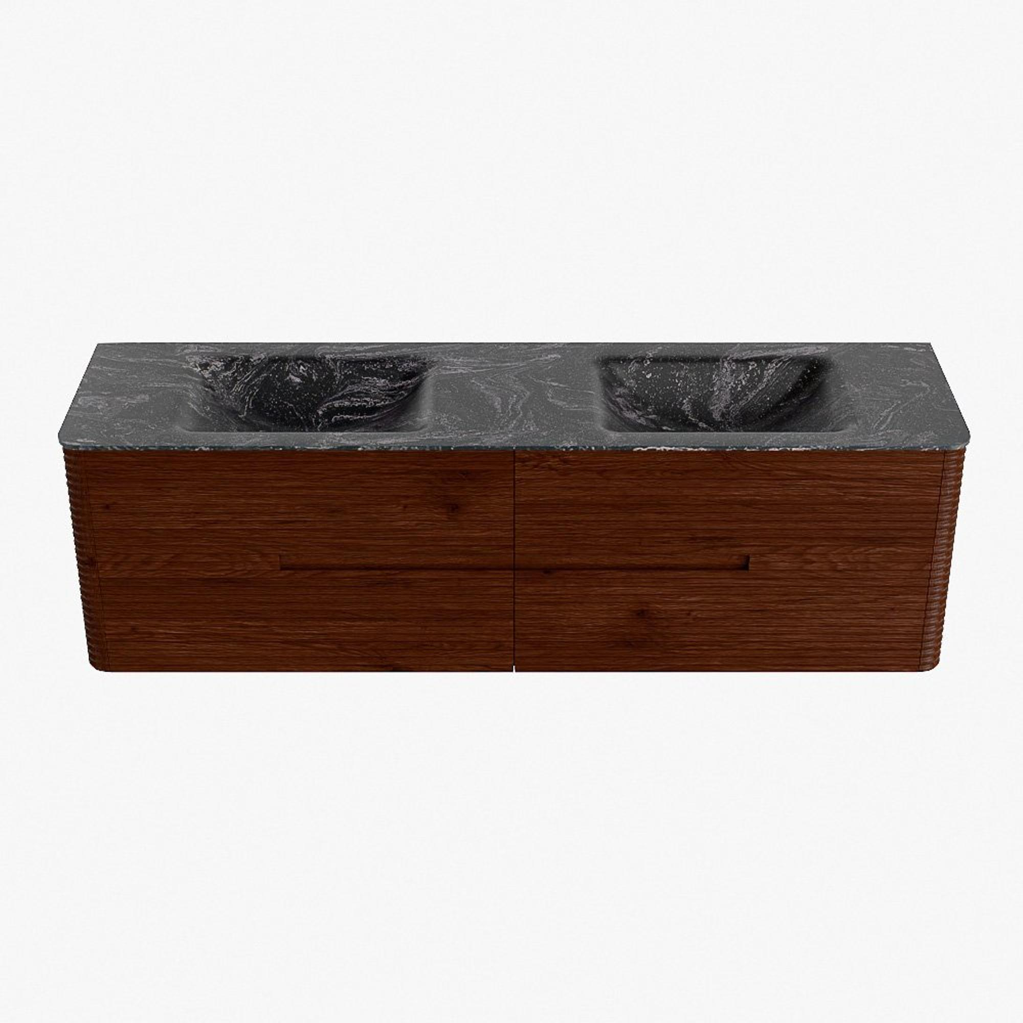 Mondiaz CIRO-DLUX Meuble de salle de bains - 170x45x50cm - lavabo solid surface Lava - 2 vasques double - sans trous de robinet - 4 tiroirs - Ruby