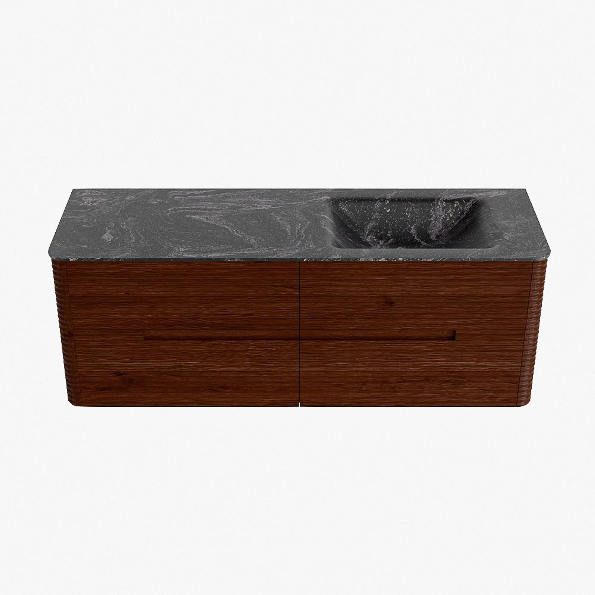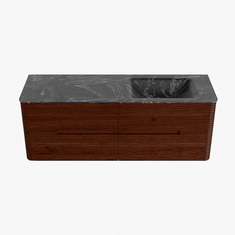 Mondiaz CIRO-DLUX Meuble de salle de bains - 140x45x50cm - Plan vasque en solid surface Lava - 1 bassin à droite - 1 trou de robinetterie - 4 tiroirs - Ruby